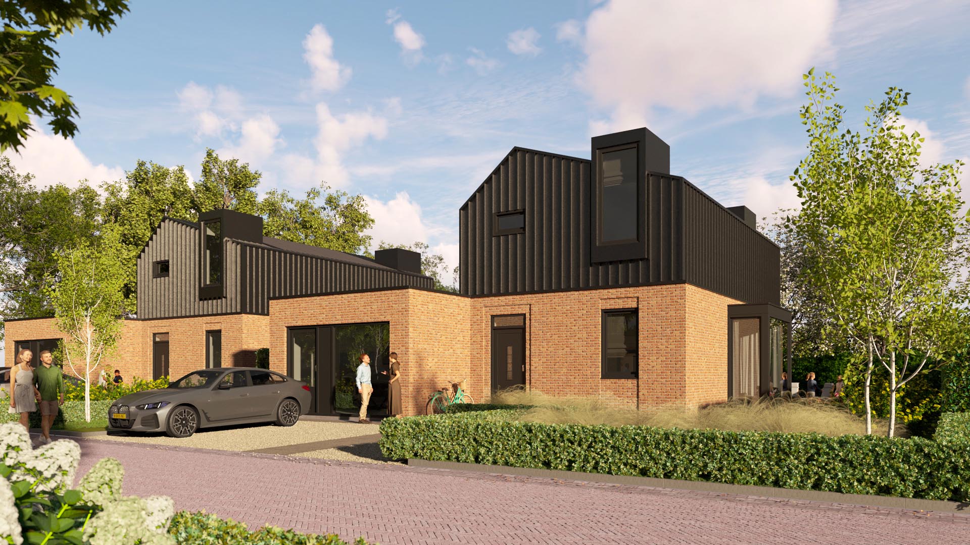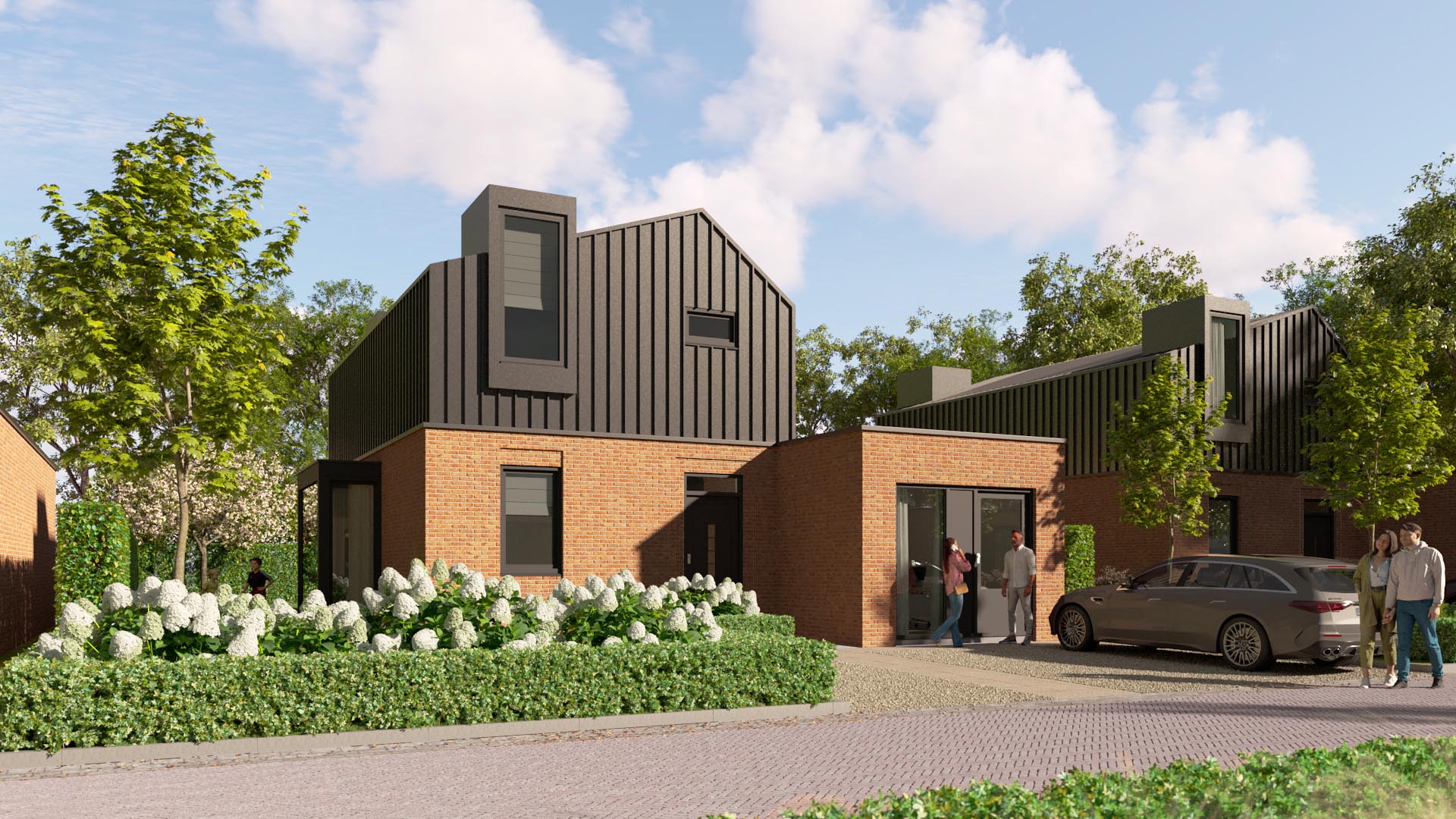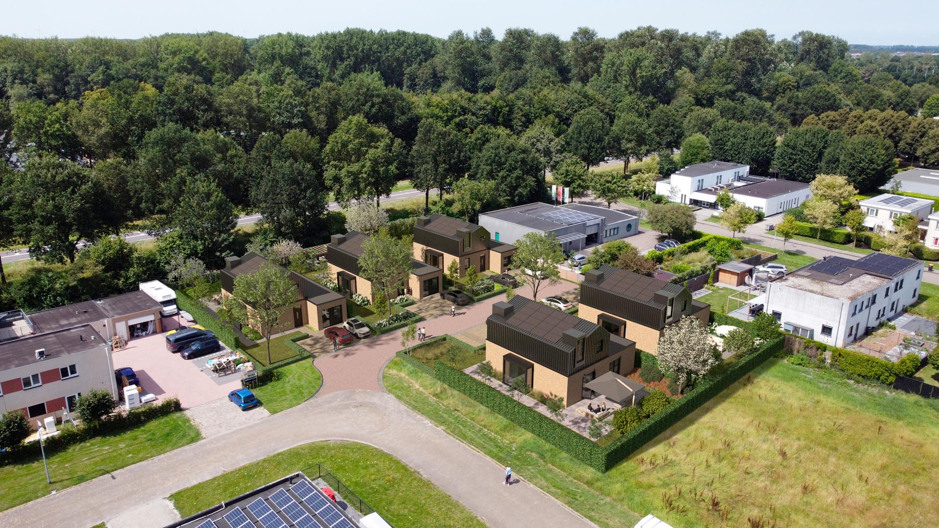 Realiseren van 5 woningen waar je ook bedrijf aan huis kan hebben of gelijkvloers kan wonen